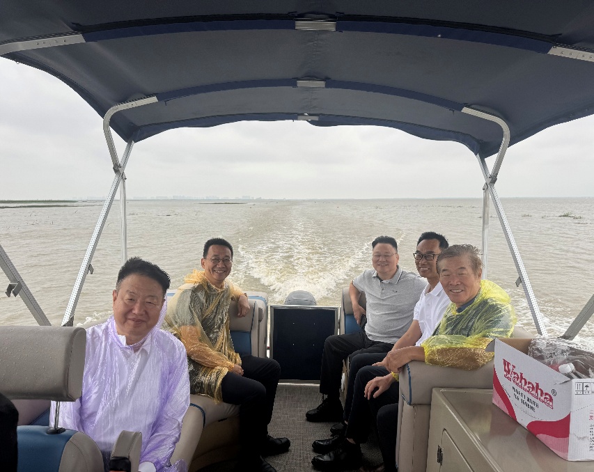 专家领导乘船考察洪湖生态修复