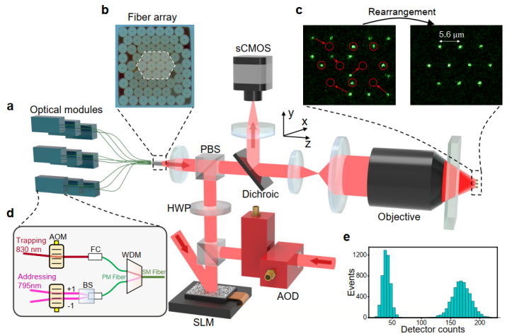光纤阵列架构原子量子计算的基本原理和实验装置图