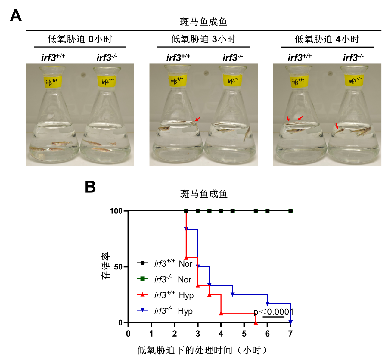 irf3敲除的斑马鱼耐低氧能力显著增强