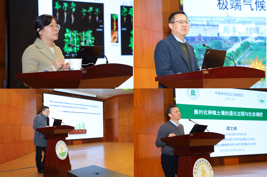 1月29日至30 日,2025 年度武汉植物园学术年会在光谷园区学术报告厅举行。武汉植物园主任王青锋、副主任黄伟、纪委书记贺锋出席会议,来自中国科学院植物研究所、北京大学、复旦大学、西北农林科技大学、华中农业大学等知名高校及科研机构的专家学者,与园内科研人员、研究生代表共 300 余人齐聚一堂,以学术交流为纽带,深耕植物与生态科学前沿领域,共绘科技创新发展蓝图。会议由武汉植物园科研处负责人、研究中心主任及研究员代表分时段主持。