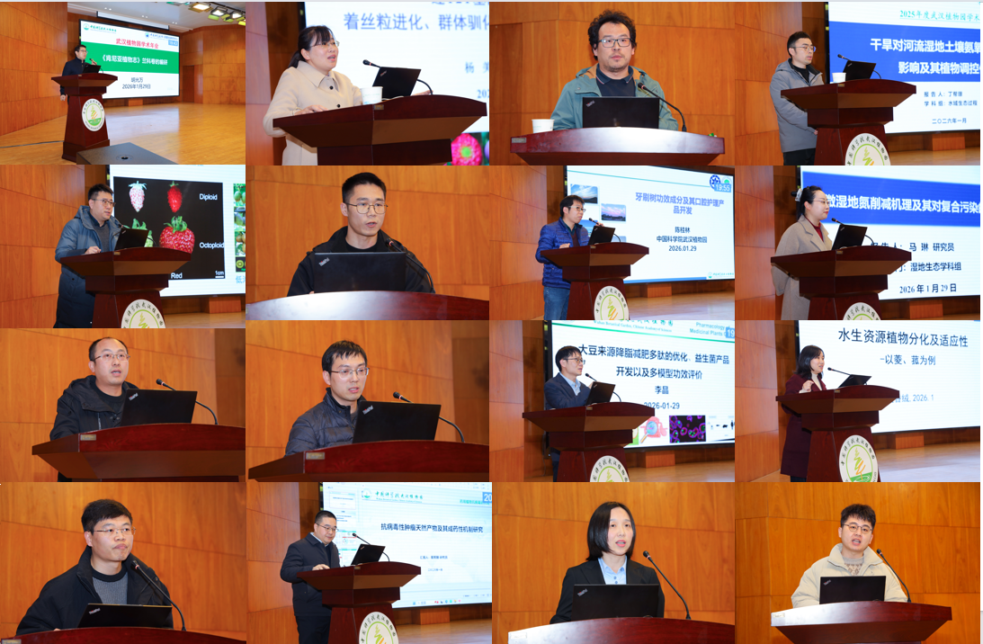 为助力青年科研人才成长成才,年会特别设置青年报告奖评选环节。评委团从国内外研究现状与前沿概述、学术观点与内容论证、演讲技巧与时间把控、多媒体制作质量四个核心维度,对 9 位青年科研人员的报告进行严格评审、最终评选出一、二、三等奖并现场表彰。此次学术年会的成功举办,集中展现了植物与生态科学领域的最新研究进展,为武汉植物园 “十五五” 的科技创新发展注入了活力。未来,武汉植物园将持续深耕植物与生态科学研究,聚焦国家战略需求,凝心聚力、勇攀高峰,为加快实现高水平科技自立自强、建设科技强国贡献更多智慧和力量。
